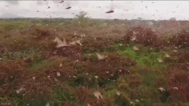 東アフリカでバッタが大量発生。農作物を食い荒らし深刻な食糧不足に 2020年02月13日 カテゴリ:環境 1: テルモトガ(東京都) [SE] 2020/02/11(火) 22:05:31.63 ID:KV/NFr850 BE:306759112-BRZ(11000) sssp://img.5ch.net/ico/kita1.gif 国連は東アフリカで起きているバッタの大量発生で、すでに深刻な食糧不足が起きていると指摘したうえで、 対応が遅れれば、さらにバッタが繁殖し、農作物に破滅的な被害が出て人道危機をもたらすと強い懸念を示しました。 東アフリカのエチオピア、ケニア、ソマリアでは、先月から害虫のサバクトビバッタが大量に発生し、農作物を食い荒らす被害が拡大しています。 これを受けて国連で緊急援助を担当するローコック国連事務次長が10日、国連本部でFAO=国連食糧農業機関の幹部と会見し、 冒頭、「3か国で1300万人が深刻な食糧不足に直面している」と指摘しました。 このうち最も被害が深刻なケニアでは、1000億から2000億匹のバッタがおよそ2400平方キロ、東京23区の4倍の範囲で農作物を襲い、 すべてが食い荒らされた場合、8400万人分の食糧が失われることになるということです。 このため国連は短期的な殺虫剤の散布や食糧支援といった緊急の支援策を打ちだしていますが、 必要な資金7600万ドルのうち、2000万ドルしか集まっていないということで、ローコック事務次長は各国に早急な資金提供を求めました。 またローコック事務次長は「これは異常気象がもたらす新たな側面だ」と述べて、異常気象が関係しているという見解を示しました。 そしてバッタは来月、産卵期を迎えるとしたうえで、殺虫剤の散布などの対応が遅れれば、 さらにバッタが繁殖し、農作物に破滅的な被害が出て人道危機をもたらすと強い懸念を示しました。 東アフリカのバッタ大量発生 “人道危機” 国連が強い懸念 https://www3.nhk.or.jp/news/html/20200211/k10012280921000.html 【東アフリカでバッタが大量発生。農作物を食い荒らし深刻な食糧不足に】の続きを読む タグ :#東アフリカでバッタが大量発生#サバクトビバッタ