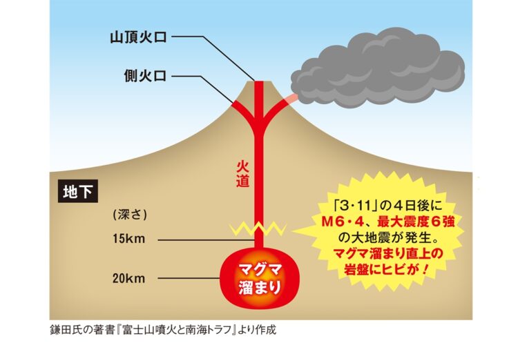 富士山は300年ぶりの大噴火に向け“スタンバイ状態”に入ったと発表 2021年06月14日 カテゴリ:災害対策 1: ミマス(北海道) [GB] 2021/06/13(日) 09:30:28.84 ID:t/gZfU8K0 BE:422186189-PLT(12015) sssp://img.5ch.net/ico/folder1_03.gif 古くから人々を魅了してきた富士山の美しい稜線は、幾度もの噴火により山頂から吹き出したマグマが緩やかに積み重なった歴史の産物でもある。数万から数十万年をかけて現在の姿となった富士山は、いま新たな大噴火の危機を迎えている。 【図解】富士山「マグマ溜まり」。3.11の4日後にできた直上の岩盤のヒビも。他、赤黒くところどころ眩しく光るニーラゴンゴ火山の溶岩が木々を焼く瞬間 「富士山は300年ぶりの大噴火に向けた“スタンバイ状態”に入っています」 そう語るのは、火山学の権威で京都大学名誉教授の鎌田浩毅氏だ。2011年の東日本大震災をきっかけに、富士山地下のマグマに影響が及んだという。 「東日本大震災で富士山の地下20kmにあるマグマ溜まりが揺すられ、噴出しやすい状態になりました。その4日後、3月15日には富士山の地下14kmで地震が起こり、マグマ溜まりの上の岩盤が割れた。この2つの条件が重なり、富士山は噴火しやすい状態に入ったのです」(鎌田氏) 2021年6月12日 7時5分 NEWSポストセブン https://news.livedoor.com/lite/article_detail/20354394/ 【富士山は300年ぶりの大噴火に向け“スタンバイ状態”に入ったと発表】の続きを読む タグ :#富士山噴火